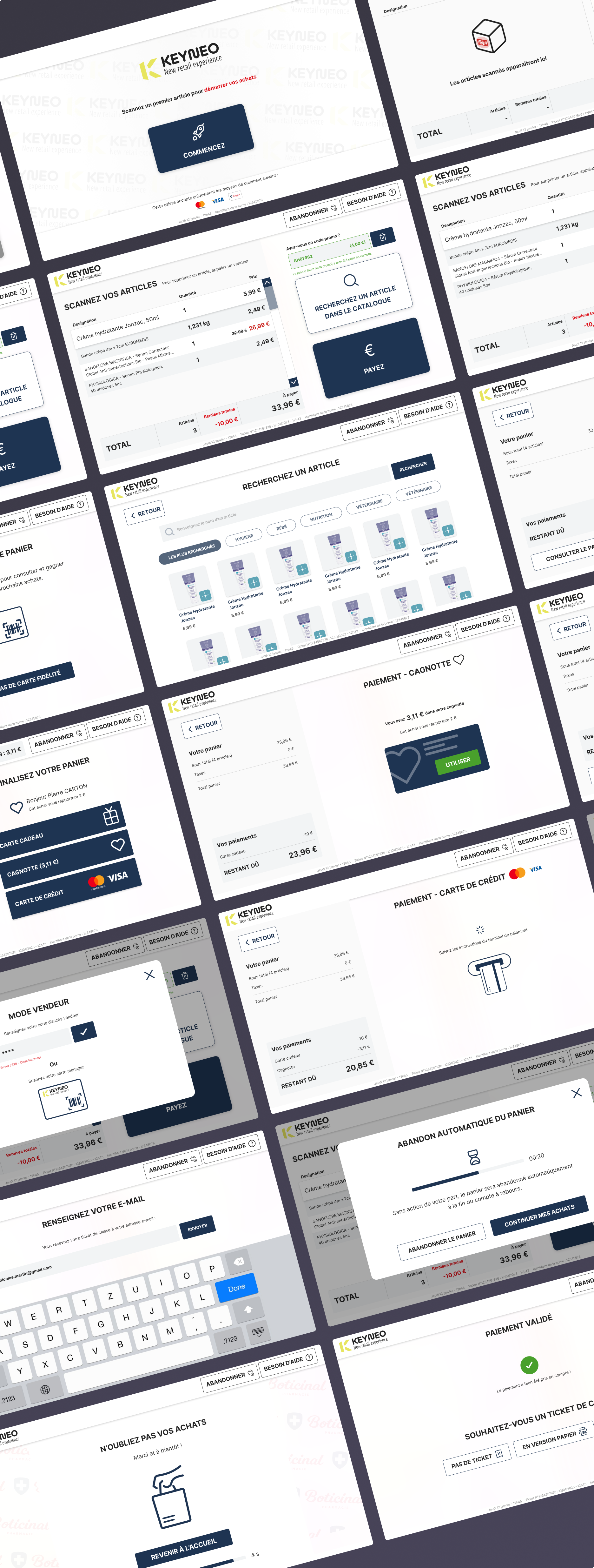 Création de A à Z du parcours et de l’interface d’une borne de paiement automatique (self checkout). Ce modèle est destiné à être utilisé par différents clients de plusieurs secteurs d’activité.